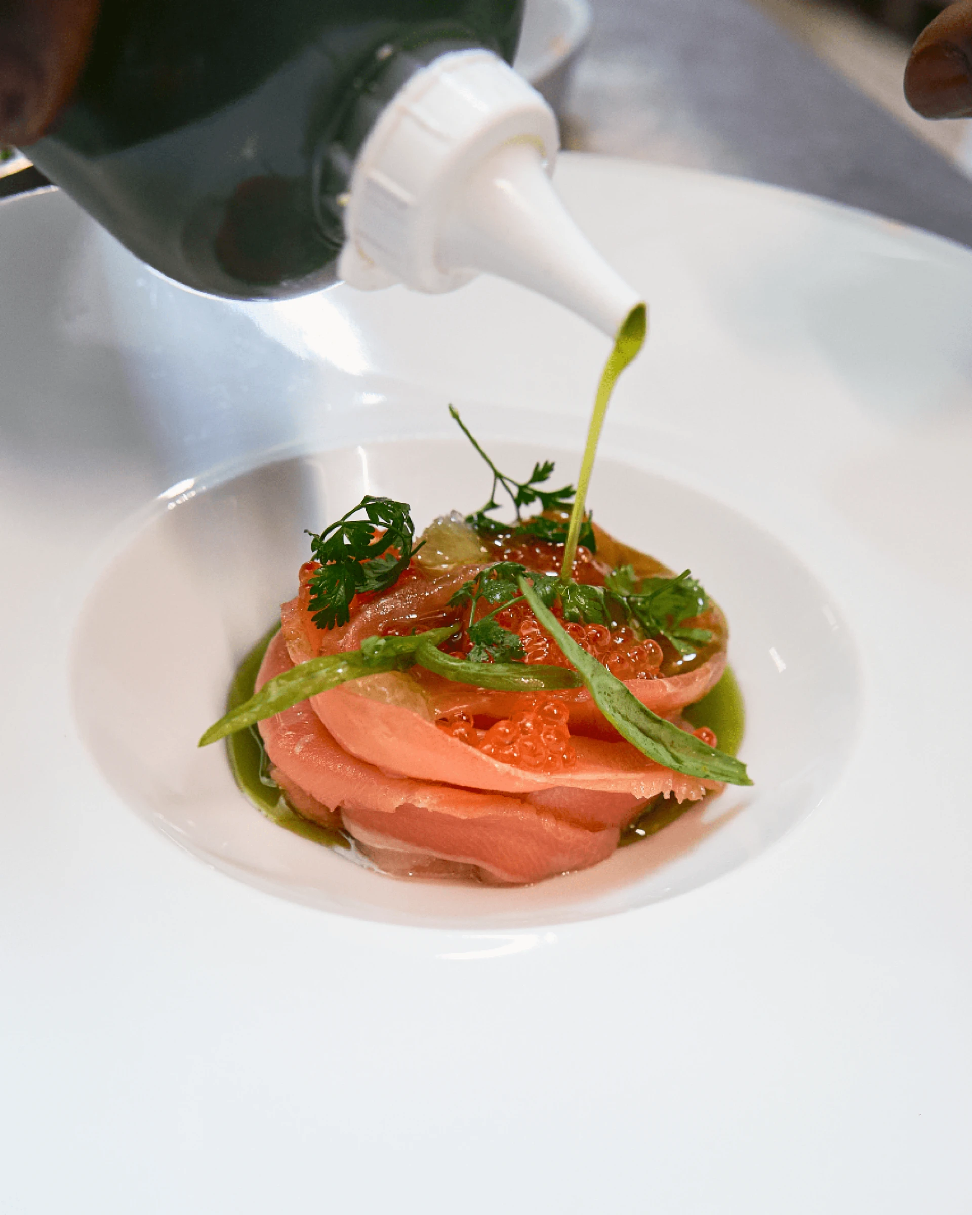 Servie dans le cadre élégamment coloré, chic et contemporain de sa salle de restaurant, la cuisine bistronomique de la table d'Elisa est élaborée sur place à partir de produits frais de saison, selon l'inspiration du marché. Une cuisine créative, inventive revisitée par le jeune chef qui ose les mariages les plus subtils à partir de recettes traditionnelles. Les assiettes sont tout aussi belles et raffinées que délicieuses. Une vraie fête pour les papilles !
